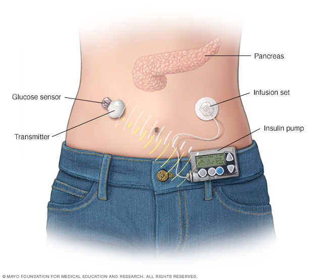 Hiện nay một số máy bơm insulin được tích hợp với thiết bị CGM và sẽ ngừng cung cấp insulin khi lượng đường trong máu giảm xuống quá nhanh, để giúp ngăn ngừa hạ đường huyết.